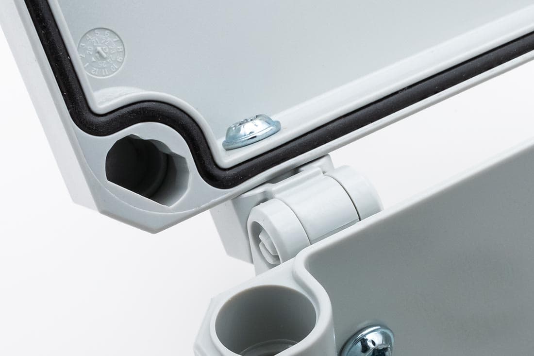 Unsere Gehäuse werden im Standard mit nahtlos geschäumter Polyuretan-Dichtung ausgestattet. Bei besonderen Anforderungen an die Temperatur oder chemische Beständigkeit, installieren wir Silikondichtungen. Um das Eindringen von Störstrahlungen zu verhindern, können wir unsere Gehäuse bei Bedarf mit einer EMV-Dichtung ausstatten.